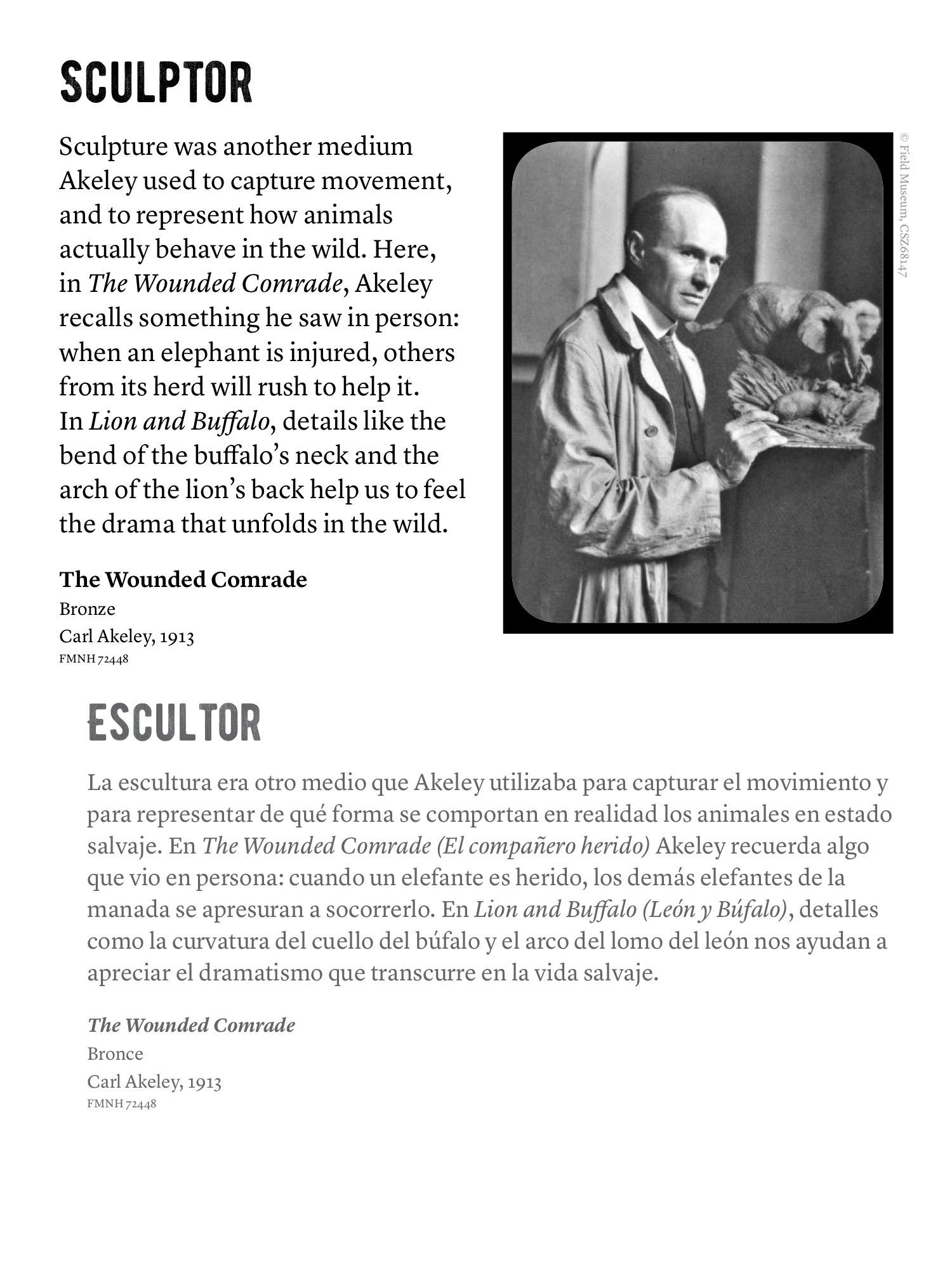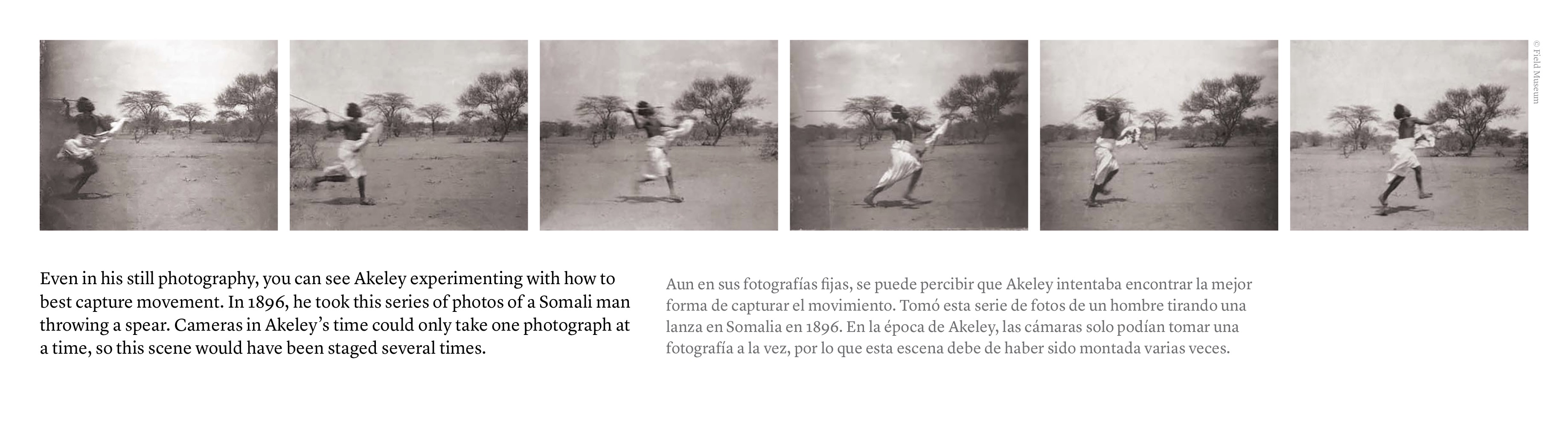 Carl Akeley (1864-1926) was the Field Museum’s Chief Taxidermist between 1896 and 1909. Though he is often described as “the father of modern taxidermy,” Akeley was also an artist, naturalist, and inventor who worked in sculpture, still photography, and motion-pictures. Across mediums, Akeley tried to capture motion—the natural world, after all, does not sit still.