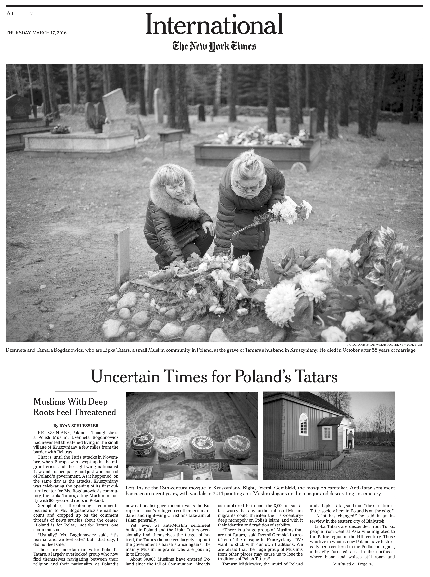 The New York Times: Poland’s Tatars Feel Uncertain as Anti-Muslim Sentiment Grows